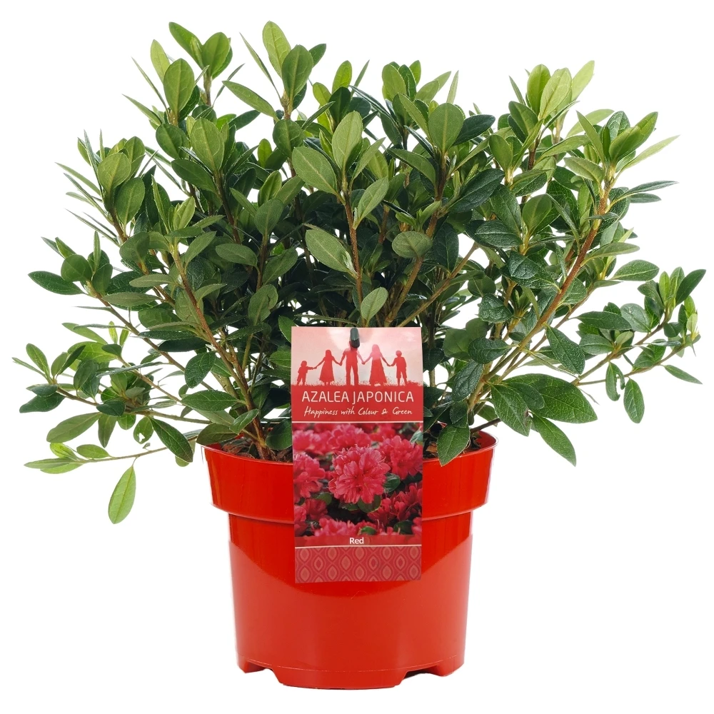 Azalea japonica are well-known and vibrant outdoor evergreen shrubs. These short-growing plants carry beautiful masses of lush colourful, bright red flowers above variegated leaves – the perfect fit for gardens, containers or rockeries.