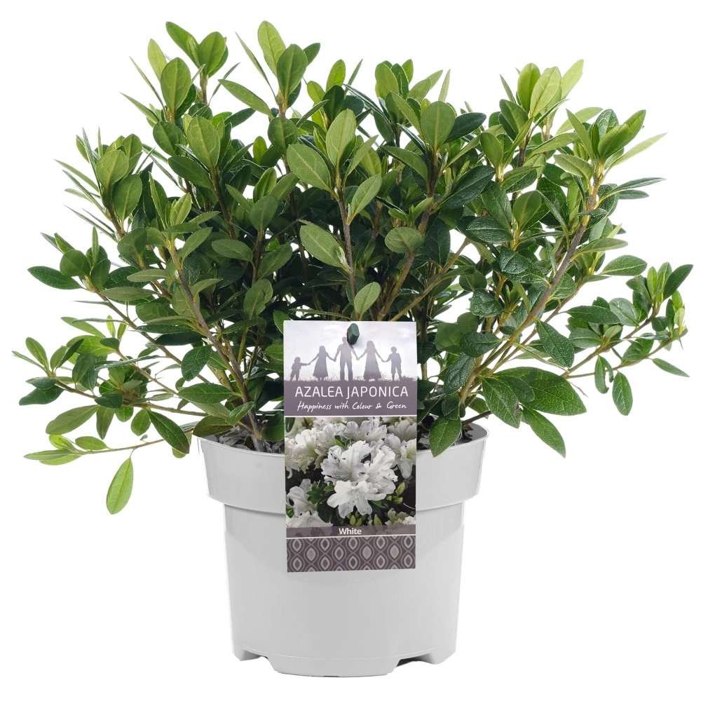 Azalea japonica are well-known and vibrant outdoor evergreen shrubs. These short-growing plants carry beautiful masses of lush colourful, bright white flowers above variegated leaves – the perfect fit for gardens, containers or rockeries.