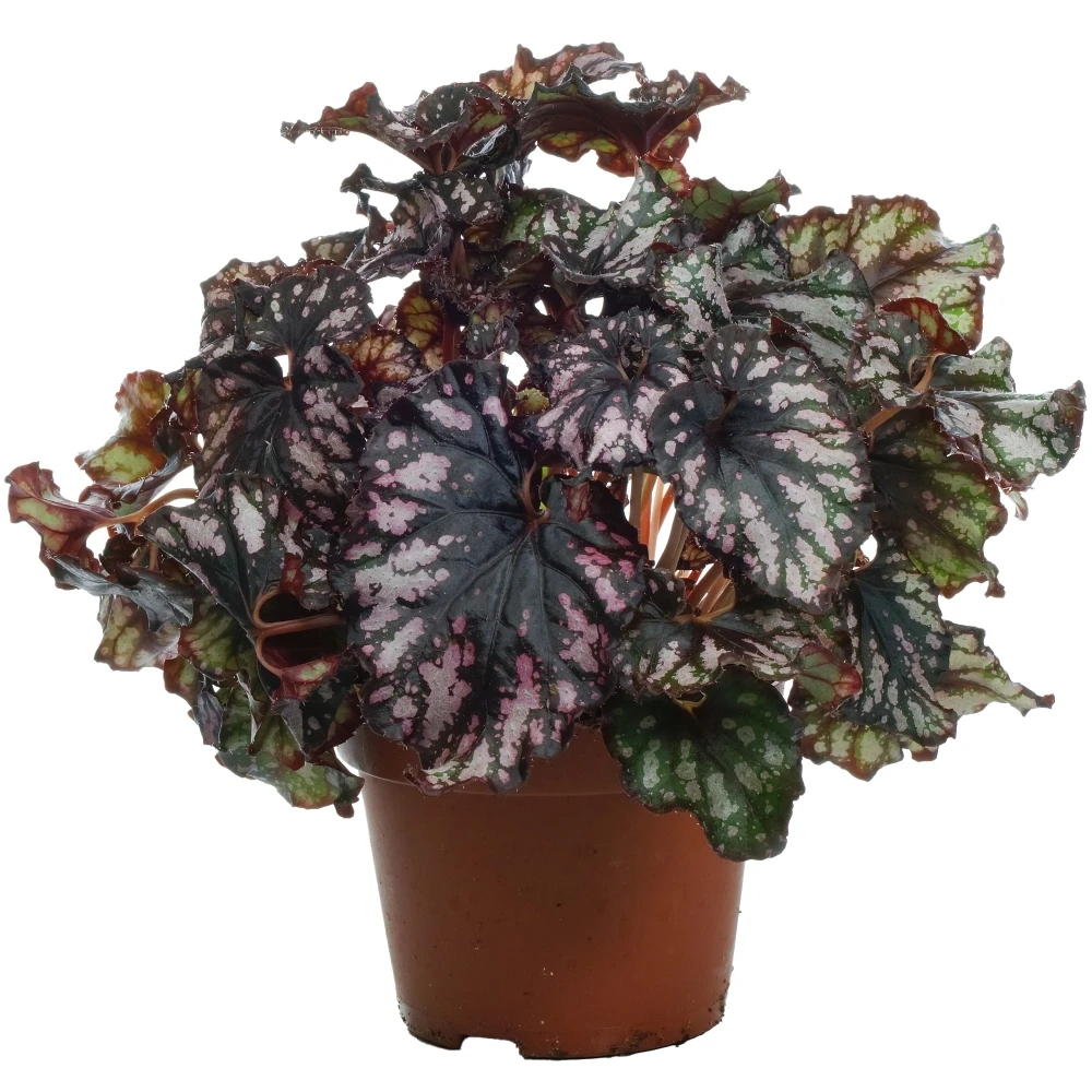 Rex Begonias, commonly known as King Begonia, are best known for their striking foliage. This Cumbia variety has foliage full of colours that can be seen differently from all angles. There are lighter shades of silver-green, a faded pink shade and a deep black in the centre which seaps out into a veining pattern throughout. King Begonia will bring all of its effective air-purifying qualities to the room it is placed in, ensuring the atmosphere stays fresh and stress-free to live in. You should place this Rex Begonias in partial shade, whilst avoiding direct sunlight due to the harm it will cause to the plants evergreen leaves. Water the plant when the soil is dry to touch – once a week will be suitable for this until its dormant period of Winter, which, by that point you can limit it to just once every two week period.