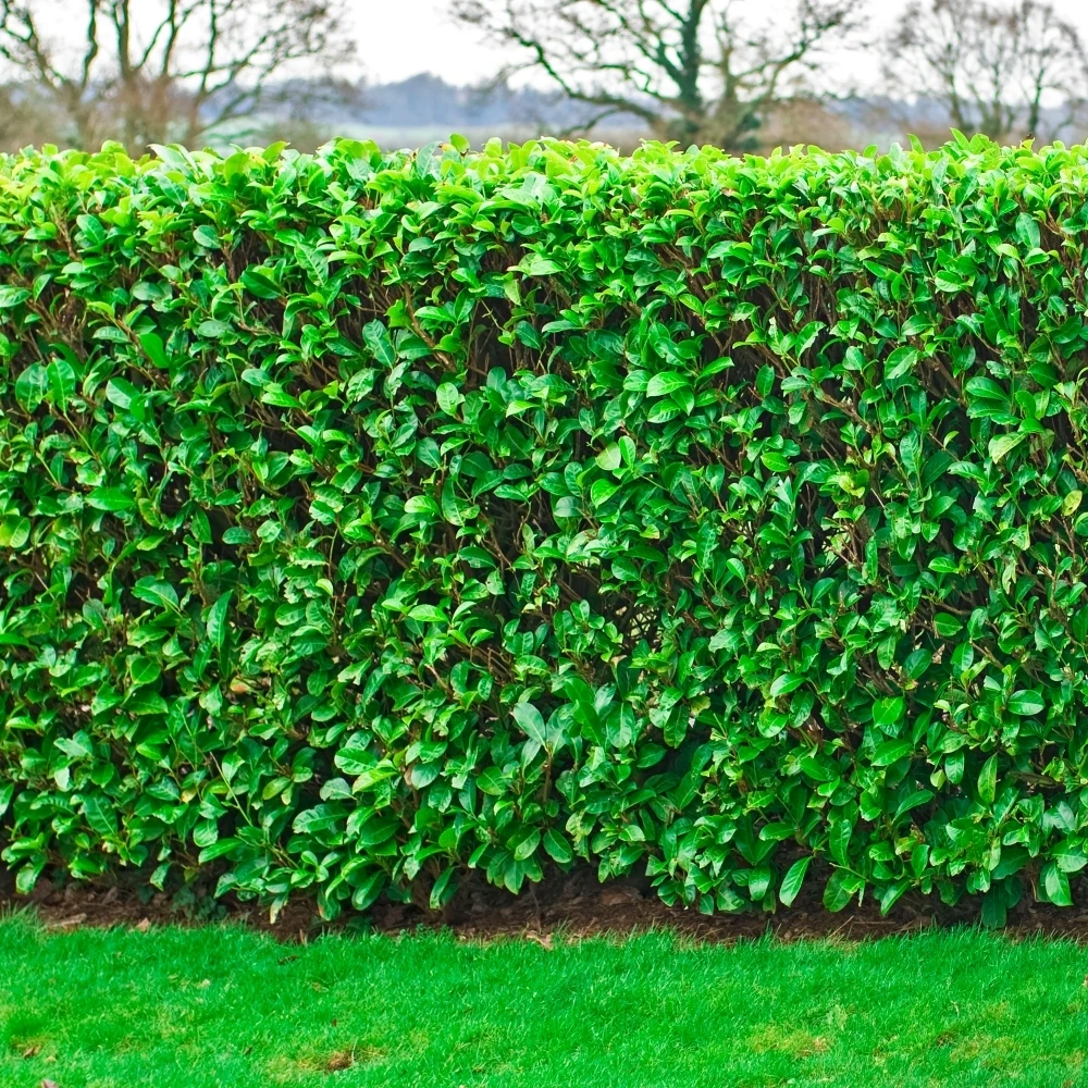 Prunus Rotundifolia is commonly known as ‘Cherry Laurel’ it is an extremely popular hedge within the UK that displays vibrant bright green foliage all year round and white flowers in summer. Prunus will keep its leaves as it is an evergreen shrub, giving you the benefits of a colourful dense screen hedge throughout the year.