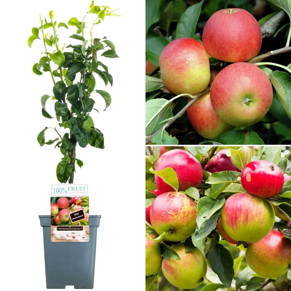Duo Apple Trees – Produce heavy crops of fruit earlier in the season and are ready for picking as soon as August. The fruits keep well and can be stored for several weeks after picking. Plant this Elstar and James Grieve apple tree in fertile, well-drained soil in a sunny area. It does need to be cross-pollinated by another tree from the same flowering group. These lovely Apple trees hold an RHS Award of Garden Merit.