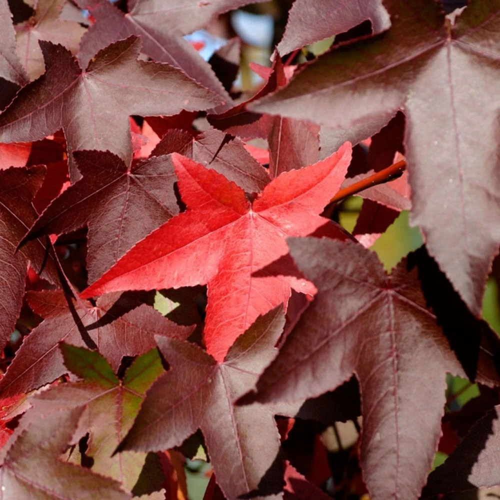 Sometimes known as the Alligator tree, this stunning Sweet Gum will turn your autumn garden into a fantasy of colour. The alligator reference comes from the bark which is fissured and corky. This bark is ideal to create a collage of bark rubbings, a fascinating holiday project to get children interested in nature.