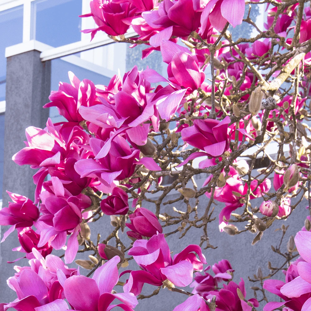 The Magnolia ‘Genie’ is wonderful attribute for a small or medium garden due to its compact size. This Magnolia would stand out particularly well against a light-coloured backdrop to showcase its vibrant colours. This Magnolia would also make for an excellent specimen plant due it blooming at an early age and its dramatic colouration.