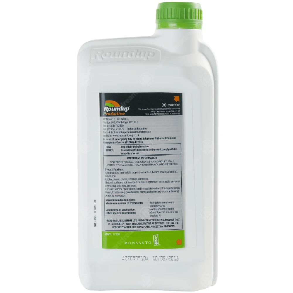 Roundup Proactive is a highly effective formulation of weed killer which is used against a wide range of annual and perennial grasses and broad-leaved weeds. The solution is non-toxic and is broken down to harmless natural chemicals by micro-organisms in the soil.