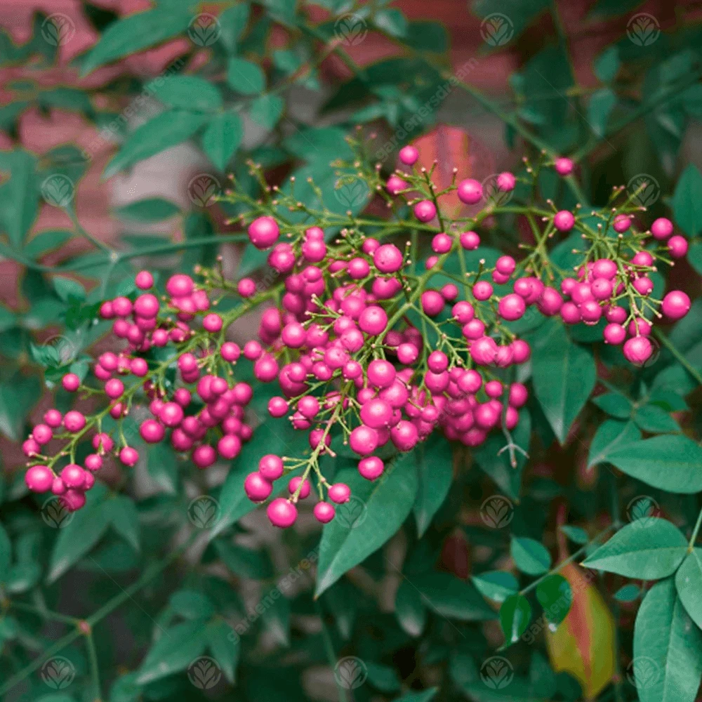 The Sorbus vilmorinii ‘Pink Charm’ is a deciduous tree more commonly known as Vilmorin’s Rowan. This variety has large green fern-like leaves that have multiple leaflets, these turn gold in the Autumn. Small white flowers followed by large pink fruits appear in the Summer and last through the Autumn. The Sorbus vilmorinii has an upright habit; this variety is hardy and will thrive in most soil types. The Pink Charm is best planted in a full sun or partially shaded location.