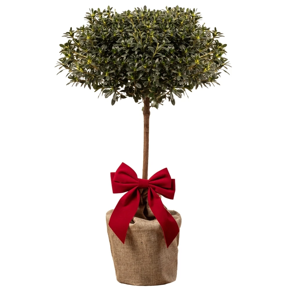 An elegant 2-3ft White Azalea Patio Tree, bursting with gorgeous white blooms by late Spring. Complete with gift wrap tied by a festive red bow, this Azalea is perfect for your patio, balcony or garden throughout the Christmas season and beyond. Due to their hardy and compact structure, they require very little maintenance. It is recommended to re-model their shape every so often to encourage fresh growth, though this should only be done after peak blooming season. Water them regularly, whilst making sure the soil is moist and well-drained.